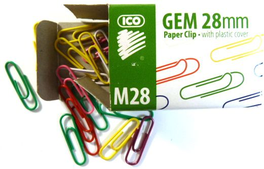 ICO paper clips 28 mm colorful, metal clips coated with plastic 100 pcs, office paper clips, colorful document clips, coated metal paper fasteners, office stationery, paper organizers, school and office supplies, colored paper clips |