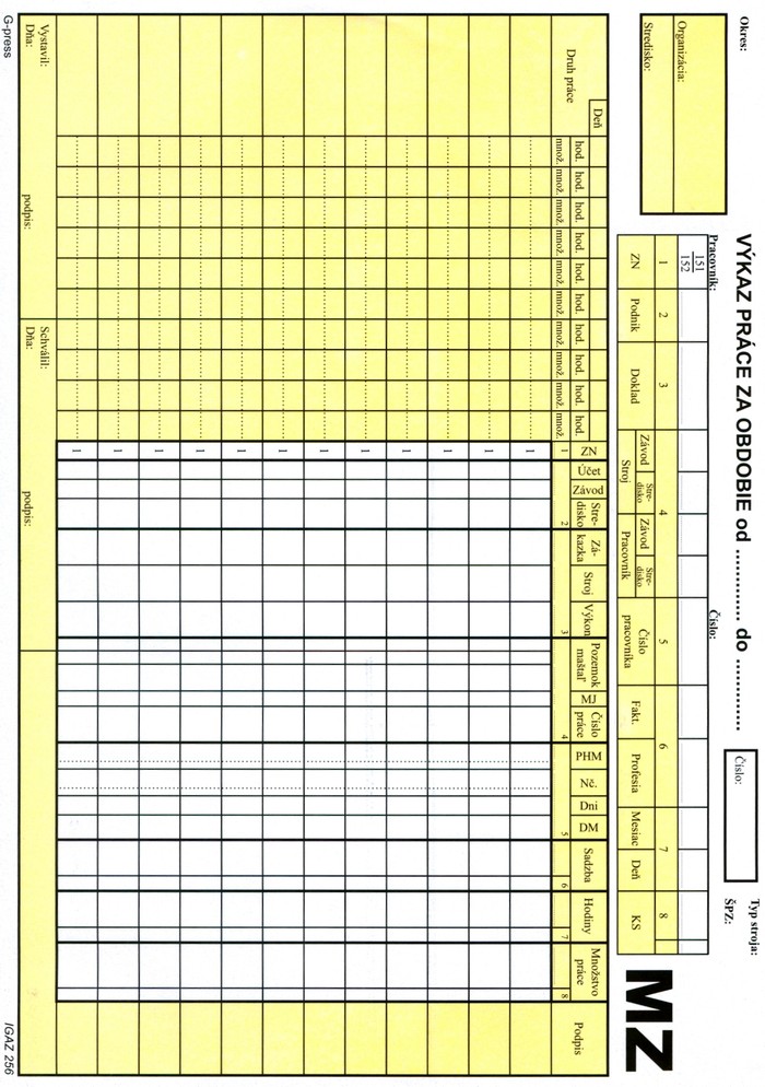 - typ produktu: tlačivo – výkaz práce