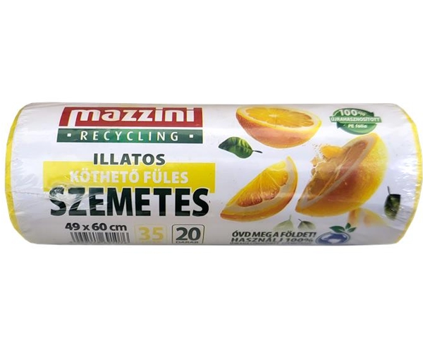 35 litrové MAZZINI vrecia na odpadky recyklované, zaväzovacie, parfumované, citrón / 20ks x 35 bal