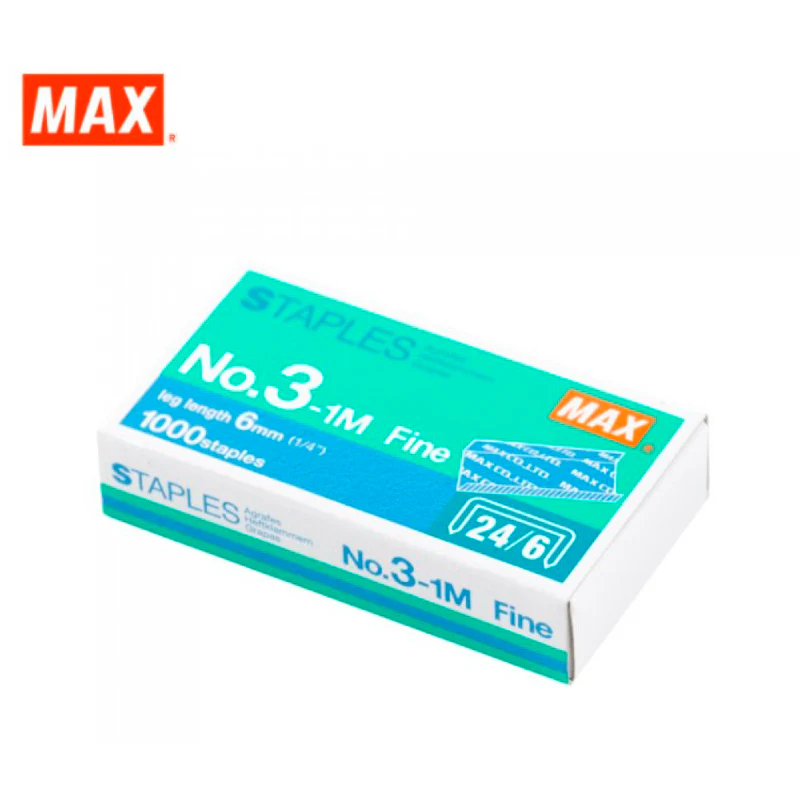 MAX Staples No.3-1M 24/6, metal office staples, pack of 1000 pcs, 24/6 standard size, reliable staples for papers, strong staples 20 sheets capacity, cheap office staples bulk, MAX stapler accessories, durable wire staples.