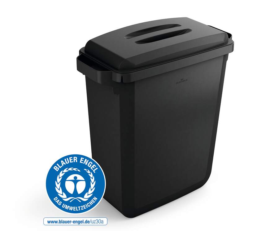 Odpadkový kôš DURABIN® ECO 60 l je odolná plastová nádoba určená na zber a separáciu odpadu v interiéri aj chránených vonkajších priestoroch. Vďaka robustnej konštrukcii, ergonomickým úchytom a praktickým držiakom na vrecko sa jednoducho používa a uľahčuje manipuláciu s odpadom. Výrobok je vyrobený z recyklovaných plastov v certifikovanej kvalite Blue Angel, čo z neho robí ekologicky zodpovedné riešenie pre kancelárie, školy, prevádzky aj domácnosti.