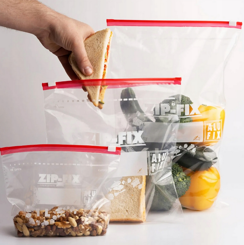 SEO EN: zip bags, AluFix ZIP-FIX, slider bags, food storage, multifunctional bags, practical bags, transparent bags, labeling tags, cosmetic bags, travel bags, reusable, home organization, office bags, hobby, crafts, small items, safe storage, liquids on airplane, mixed sizes, 1 L, 3 L, 6 L, pouches |
