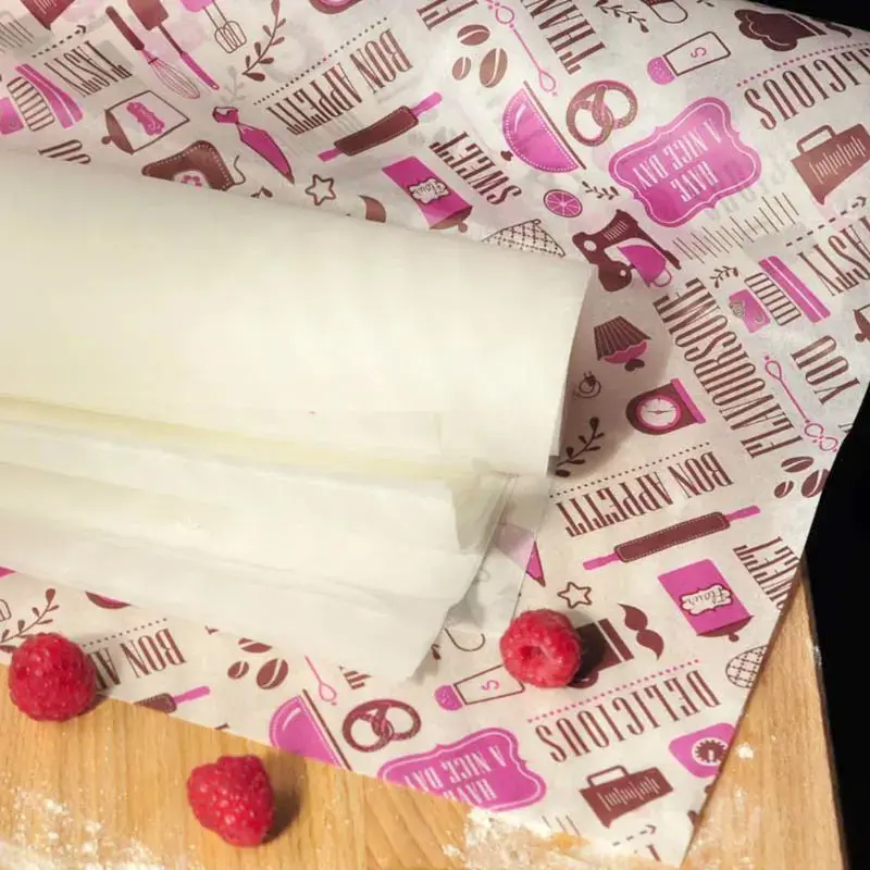 greaseproof paper, bakery wrapping paper, confectionery paper, food wrap paper 50x70, printed greaseproof sheets, cake wrapping paper, eco food paper, recyclable food wrap, bakery packaging sheets, KH PACK BR paper, olhaoffice.sk