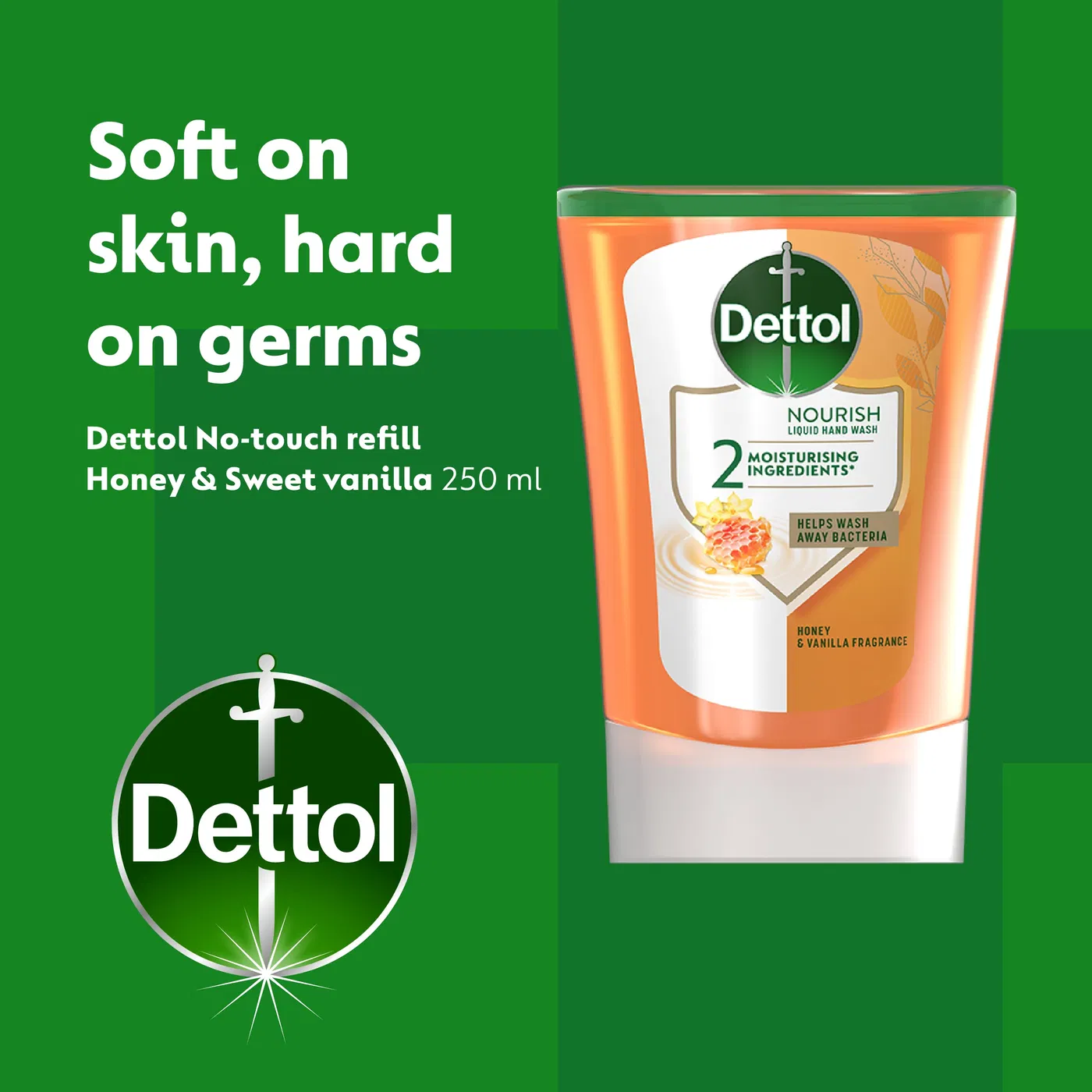 Dettol refill liquid soap sweet vanilla, antibacterial hand soap refill, touchless dispenser refill, daily hand hygiene soap, vanilla scented hand wash, moisturizing antibacterial hand soap, 250 ml liquid soap refill, Dettol liquid soap.