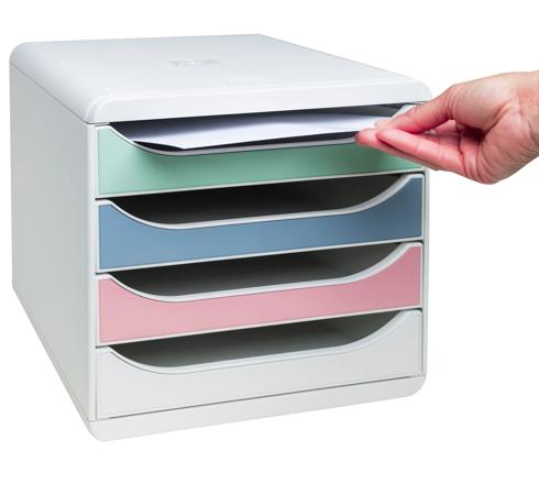 Exacompta AutentiK Big Box – zásuvkový box A4+, 4 zásuvky, biely korpus, farby biela, modrosivá, ružová candy, zelená šalvia