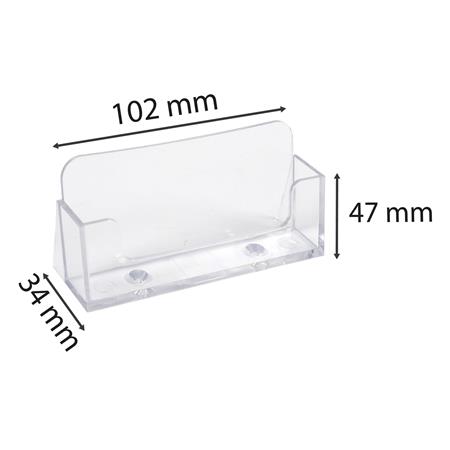 stojan na vizitky Exacompta priehľadný, 1 priehradka na 50 vizitiek, prezentér na vizitky na stôl, číry plastový držiak na vizitky, Exacompta Office, PS plast, 34x102x47 mm, stojanček na vizitky