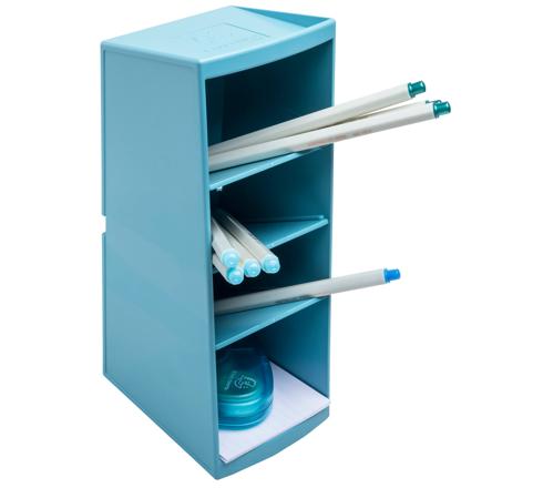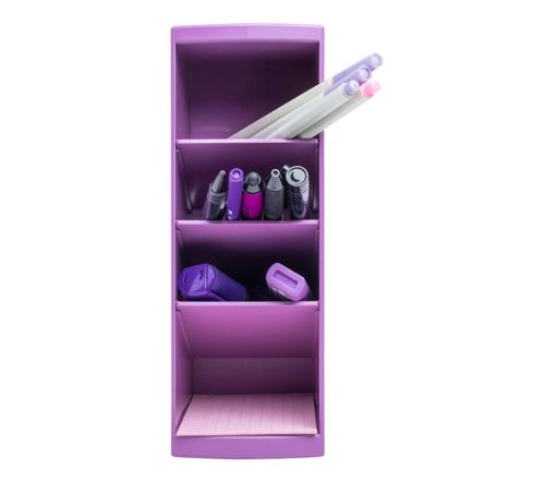 Organizér Multi Tower má 4 priehradky rôznej hĺbky (8 až 11 cm), ideálne na odkladanie pier, zvýrazňovačov, nožníc, lístkov Post-it, mobilného telefónu či iných drobných kancelárskych potrieb. Vďaka kompaktným rozmerom (výška 23 cm, šírka 8 cm, hĺbka 11 cm) sa zmestí na stôl aj poličku. Možno ho používať na výšku aj na šírku a vďaka priloženým klipom je možné spojiť viac kusov pre väčšiu kapacitu.
