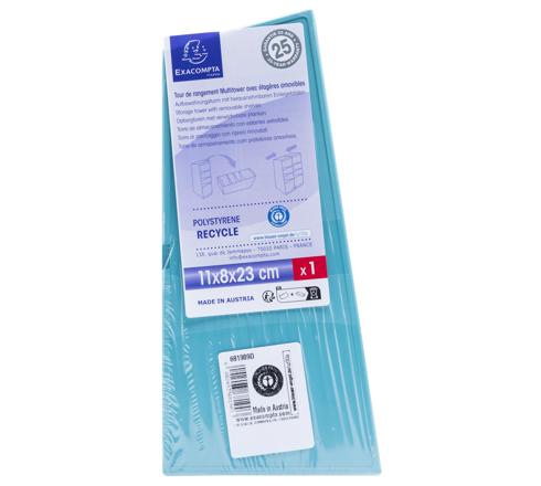 Exacompta Pop’N Co Multi Tower, farebný stolový organizér, recyklovaný plast, Blue Angel, 4 priehradky rôznych hĺbok, modulárny organizér, mix farieb cyan, lilas, lime, mangue, kancelársky držiak na perá a doplnky