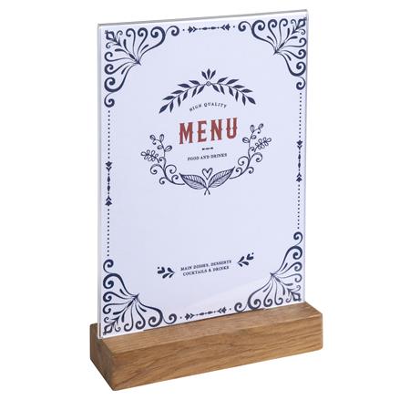 Exacompta A5 display stand, acrylic document holder with oak base, photo stand, leaflet holder, menu stand, clear acrylic display, table document presenter, office supplies, brochure holder, vertical display stand.