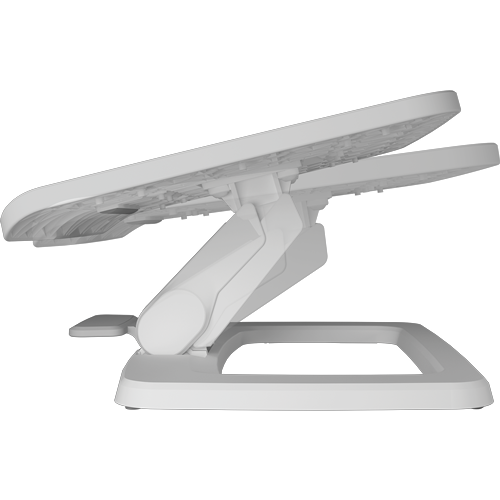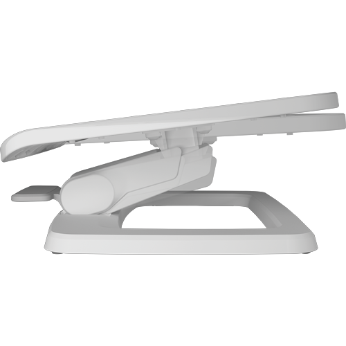 Fellowes Hana™ LT white footrest supports feet and encourages movement to improve circulation and back comfort. Ergonomic office footrest with anti-slip surface, active movement feature, hands free height adjustment, two height settings for sitting and standing, and adjustable light or heavy tension. Suitable for office, home office, workstation and sit-stand desk users. Related keywords: white footrest, ergonomic footrest, office foot rest, active movement footrest, adjustable footrest, standing desk footrest, under desk foot support, circulation footrest, back comfort footrest.