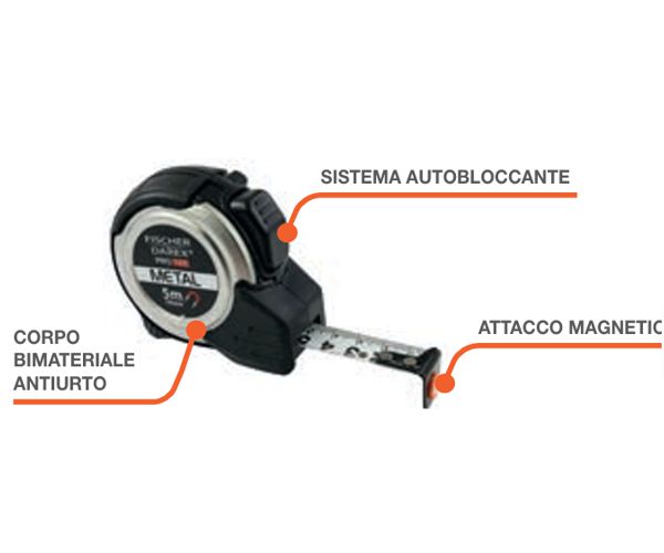 Fischer Darex samosvorný meter s kovovým telom a pogumovaným protišmykovým povrchom. Disponuje magnetickým uchytením a odolnou bimateriálovou konštrukciou proti nárazom. Ideálny na presné meranie a praktické použitie.