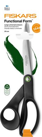 Univerzálne nožnice veľké Fiskars Functional Form ReNew sú vyrobené z recyklovaných materiálov (minimálne 70 %) a poskytujú maximálny komfort a strihací výkon
