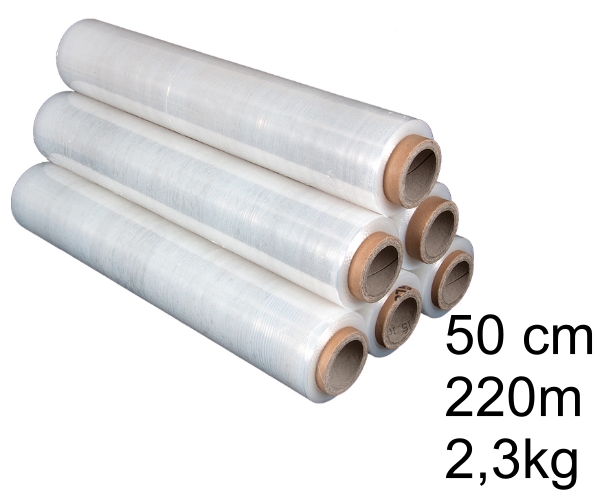 Ručná prieťažná fólia priesvitná 0,5 m x 220 m, 20 mikr.