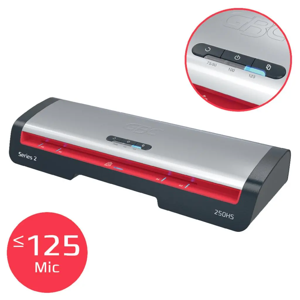 Laminátor GBC 250HS A3 je spoľahlivým riešením na každodenné laminovanie v profesionálnom kancelárskom prostredí. Kombinuje výkon, rýchlosť a jednoduchosť používania. Vďaka rýchlemu zahrievaniu za 1 minútu a laminácii listu A4 (75 mikrónov) už za 36 sekúnd výrazne šetrí čas a zvyšuje produktivitu. Pri použití špeciálnych laminovacích vreciek GBC na rýchle laminovanie sa čas spracovania skracuje až o 30 %.