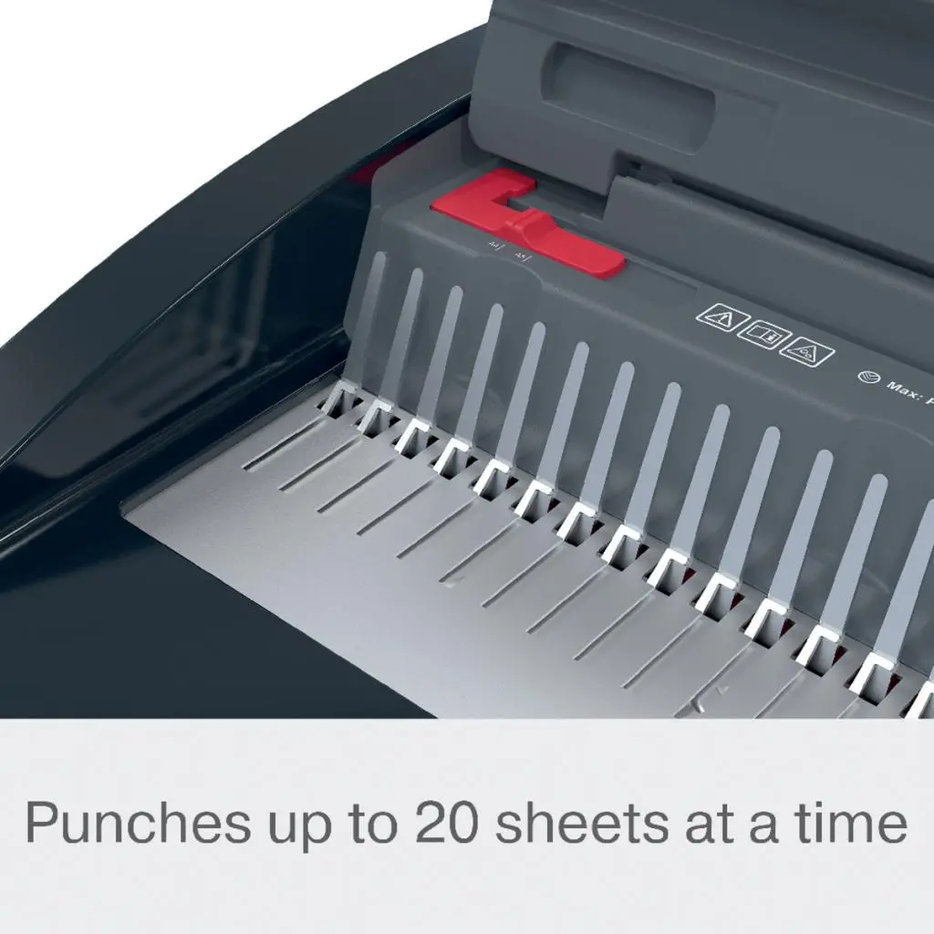 CombBind® CB20 je spoľahlivý a kompaktný ručný viazač s plastovými chrbtami, ideálny pre zdieľané používanie v kancelárskom a školskom prostredí. Umožňuje prederaviť až 20 listov papiera (80 g/m²) naraz a zviazať dokumenty s kapacitou až 240 listov pomocou chrbtov s priemerom 28 mm. Vďaka ľahkému a priestorovo úspornému dizajnu sa jednoducho používa aj ukladá, keď sa nepoužíva.