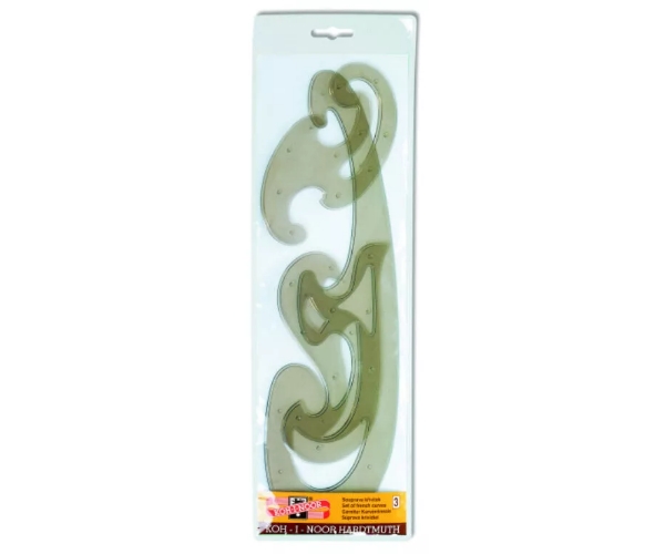 Curved ruler set no. 3 KOH-I-NOOR 750068, 3 pcs rulers K13 K23 K33, transparent plastic, precise curve drawing and technical drawing, school and office supplies, hobby projects, precise measurement. |