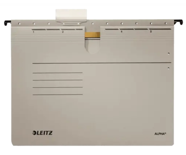 Leitz ALPHA suspension files with prong fastener grey, A4 filing, FSC certified, index tab with replaceable label, thumb cut-out, daily office filing supplies, olhaoffice