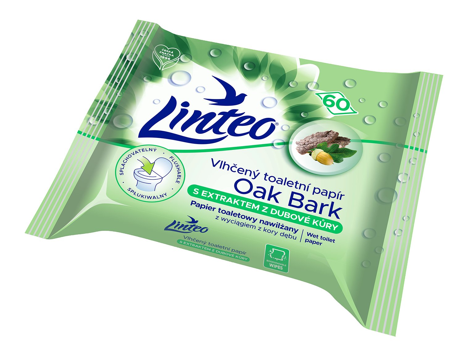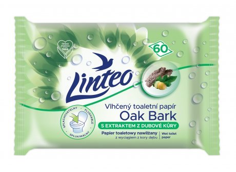 vlhčený toaletný papier linteo, linteo dubová kôra, vlhčený papier splachovateľný, intímna hygiena, jemný papier na toaletu, hygienické obrúsky linteo, ekologický rozložiteľný papier, vlhčené utierky s harmančekom a pantenolom, hygienický toaletný papier, praktické balenie 60 ks