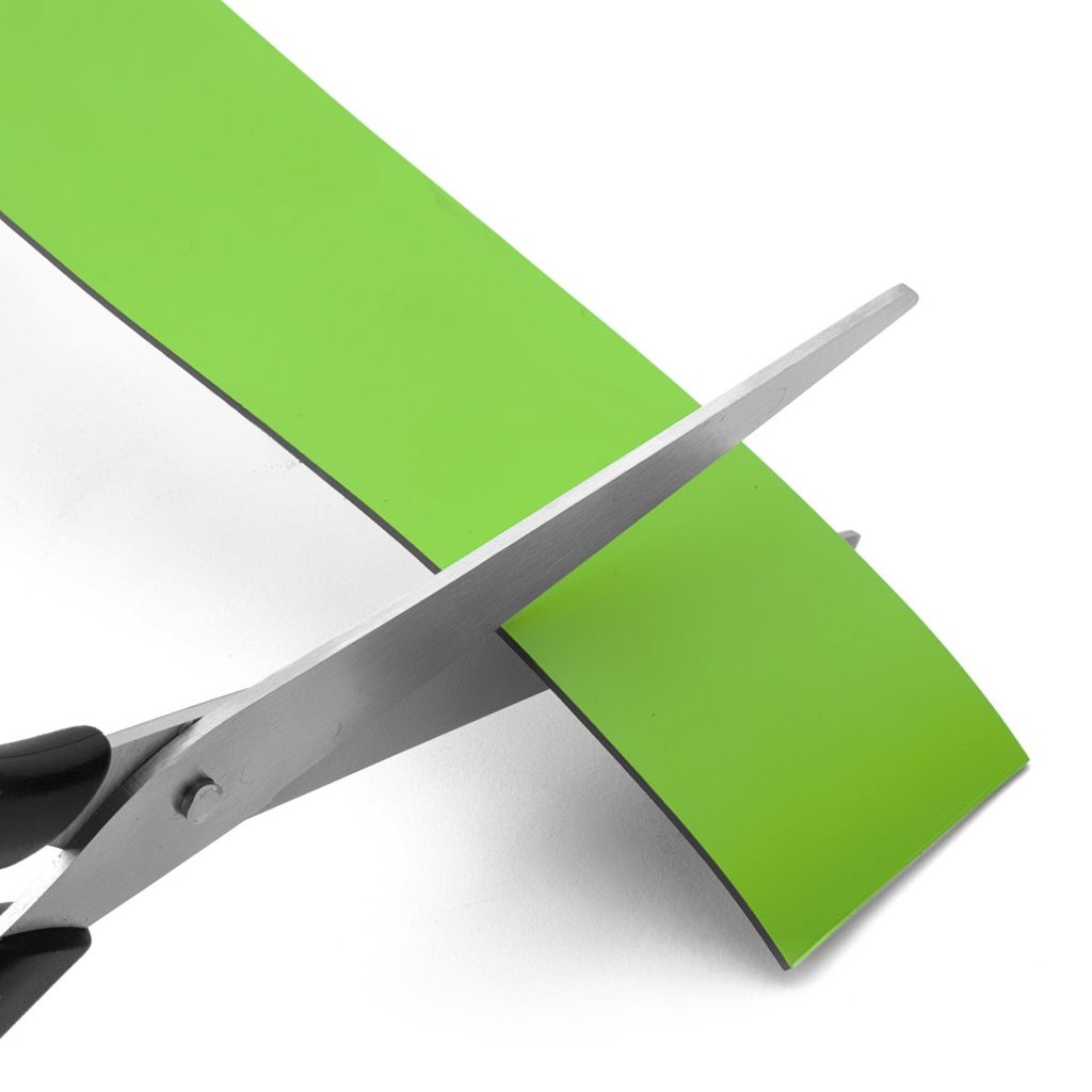 Magnetickú pásku môžete nastrihať nožnicami alebo narezať zalamovacím nožom na potrebný rozmer, dá sa popisovať permanentnými fixami. Po vymazaní liehom však môže zostať viditeľná stopa.