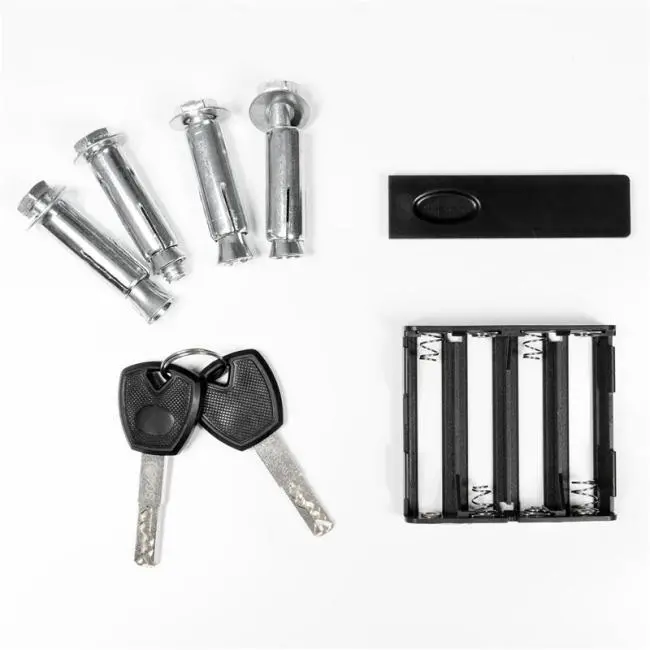 - Elektronický zámok s napájaním 4 × 1,5 V AA batériami (nie sú súčasťou balenia)