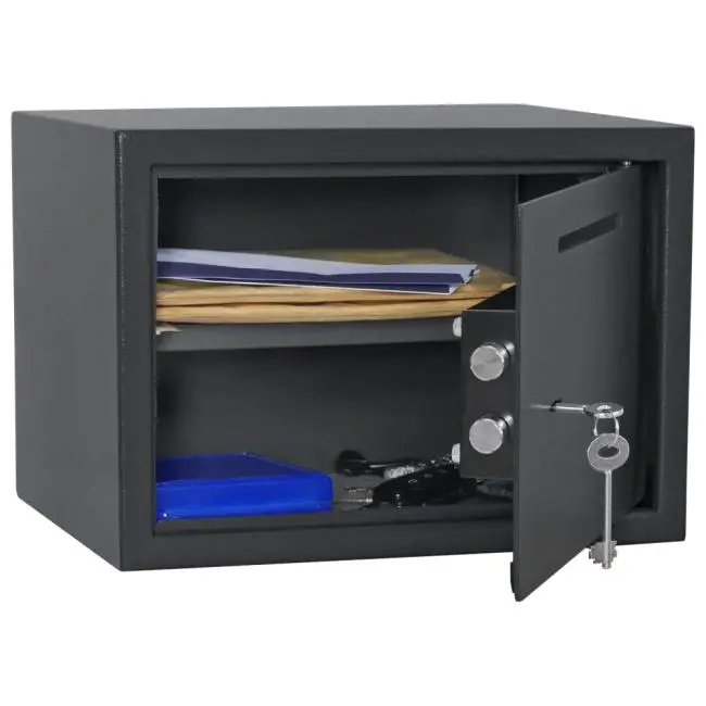 Nábytkový sejf Jupiter 3 SLOT od značky Rottner Security je praktické riešenie pre bezpečné uloženie hotovosti, dokumentov, šperkov či iných cenností. Je vybavený trezorovým zámkom s dvoma kľúčmi a disponuje vhadzovacím otvorom umiestneným v prednej stene, ktorý umožňuje vkladanie bankoviek alebo dokumentov bez potreby otvárania sejfu.
