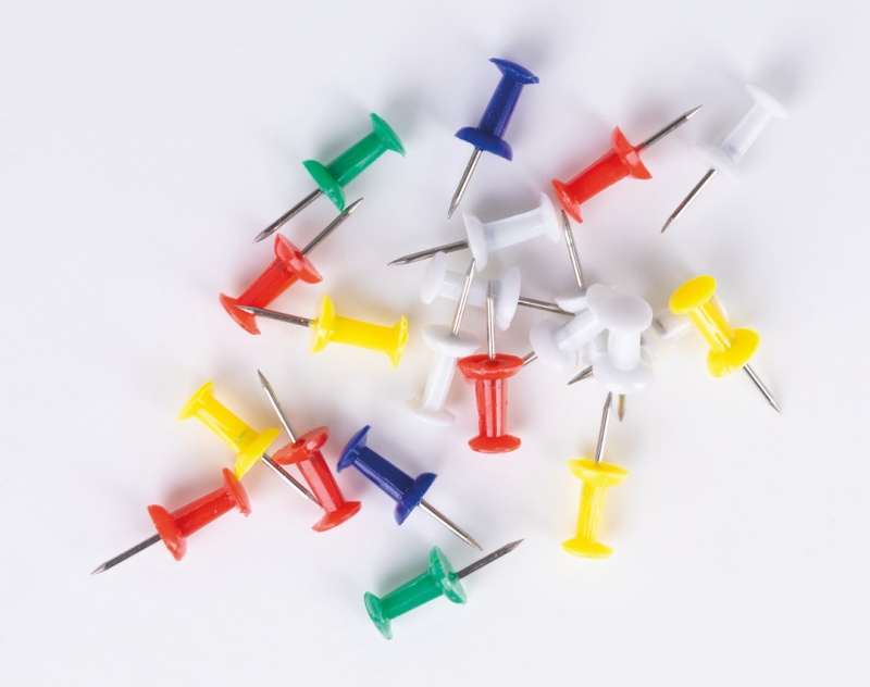 Špendlíky s farebnou plastovou hlavičkou. 100 ks v mixe farieb.