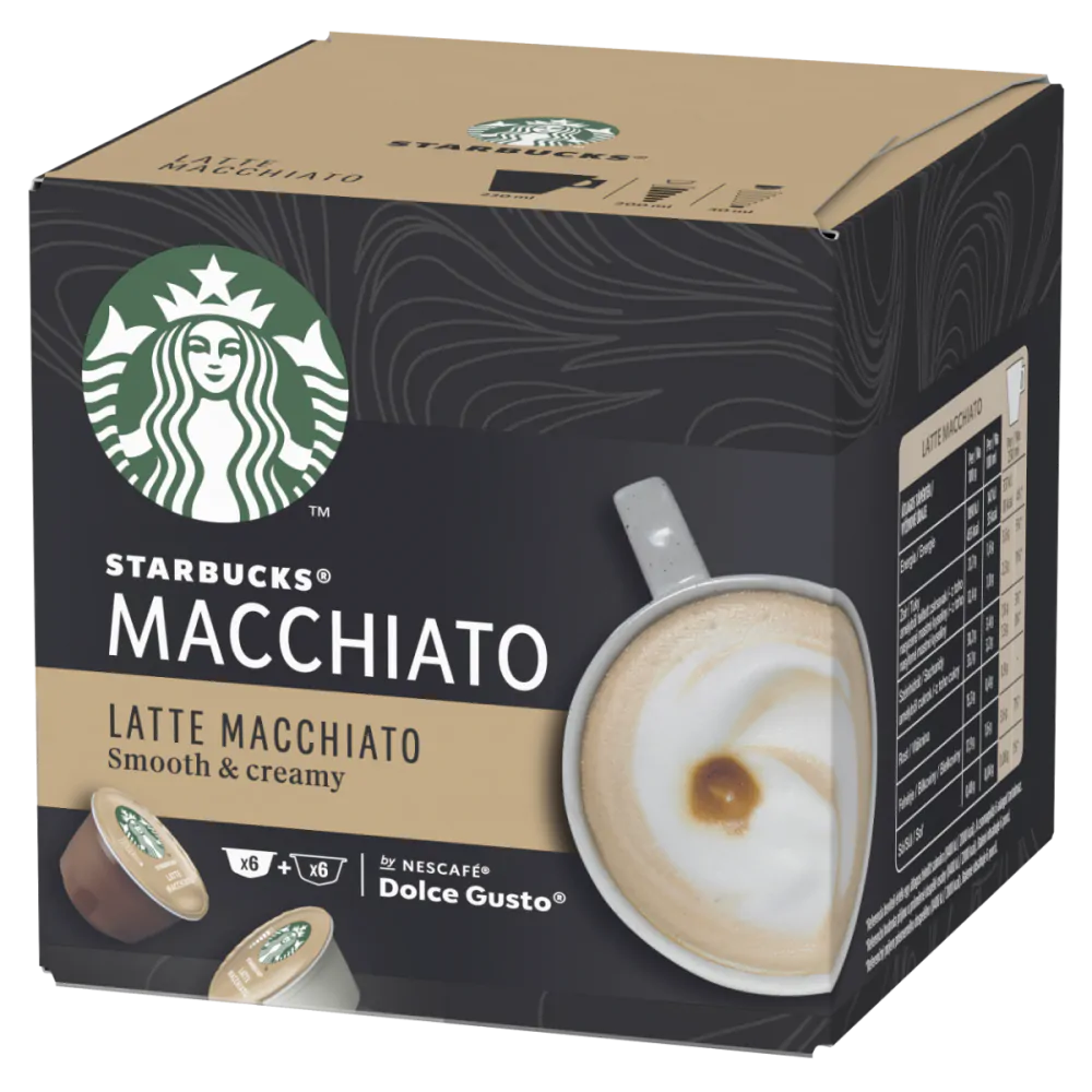 Objavte jemnú a krémovú kávu STARBUCKS® Latte Macchiato s horúcim mliekom, espressom a bohatou mliečnou penou, navrhnutú pre kávovary NESCAFÉ® Dolce Gusto®.