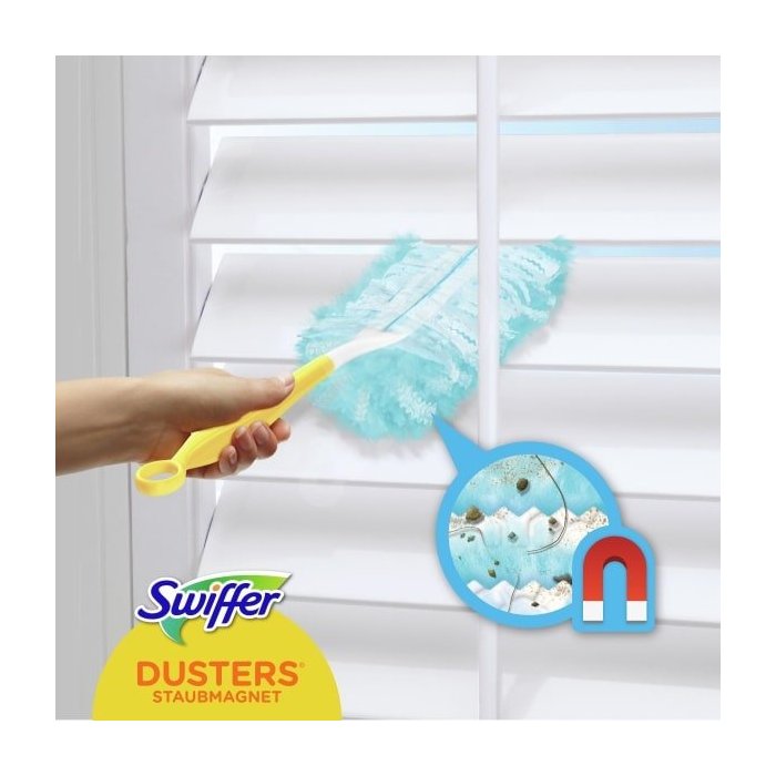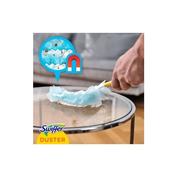Swiffer náhradné prachovka slúži na zachytenie prachu, vlasov a alergénov z roztočov, ale aj mačacích a psích chlpov z povrchov, a to pomocou tisícov jemných povrchovo upravených vlákien. Prachovky od značky Swiffer sú vyrobené z jedinečných vlákien, ktorá sa tvarovo adaptujú zákutiam a trhlinám, kam prenikajú a všetky povrchy tak zbavujú prachu, vlasov a chlpov bez vírenia prachu a nečistôt.