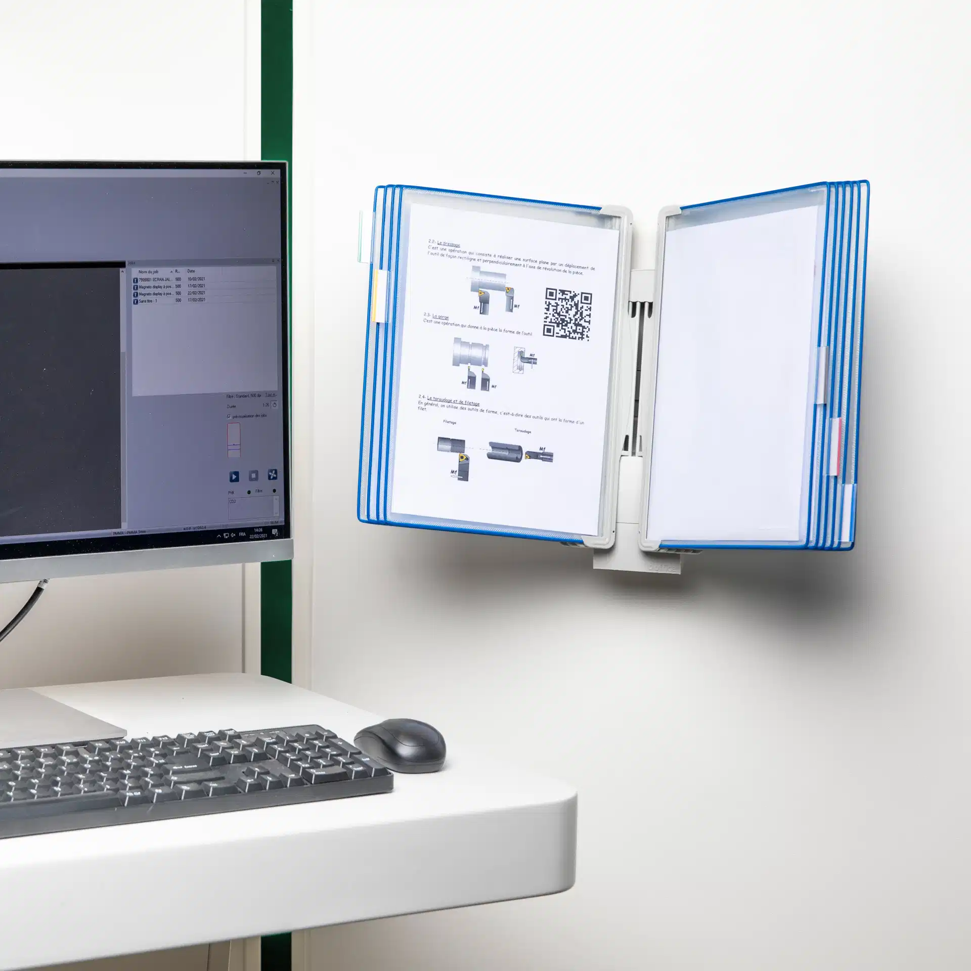 SEO EN: Tarifold Design Wall Document Display System A4 10 PP Pockets, wall document display system, A4 wall display unit, 10 pivoting pockets, glare-free pockets, polypropylene pockets, steel wire reinforced pockets, metal pivots, top loading pockets, clip-on index tabs, extension clips, wall mounted document display, information display system, office wall display, reception wall display, waiting room document holder, safety instruction display, evacuation plan display, Tarifold 714301, made in France.