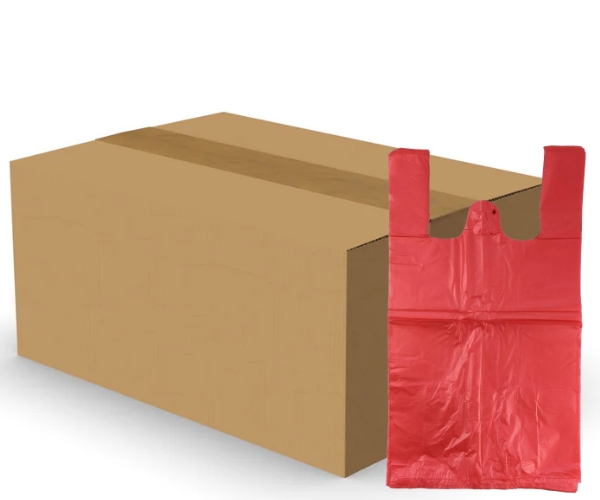HDPE červená taška 33+10x68 cm, nosnosť 15 kg, kartón 15 blokov po 50 ks, 750 ks celkom, odolná, praktická, ergonomická, pre nákupy, potraviny, donáškové služby, reštaurácie, mäsiarstva, trhoviská, vodoodolná, hygienická, supermarket, pekáreň, fast-food, extra-silná. HDPE red bag 33+10x68 cm, capacity 15 kg, carton 15 packs of 50 pcs, total 750 pcs, durable, practical, ergonomic, shopping, groceries, delivery, restaurants, butcher shops, markets, waterproof, hygienic, supermarket, bakery, fast-food, extra-strong. |