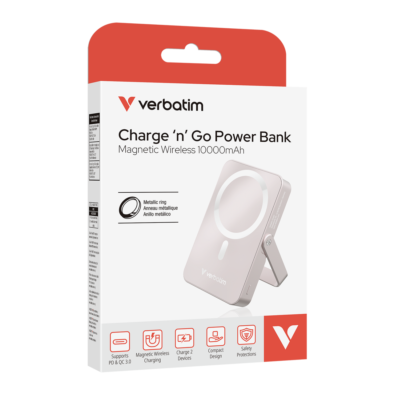 VERBATIM Charge ’n’ Go magnetická bezdrôtová powerbanka so stojančekom 10 000 mAh