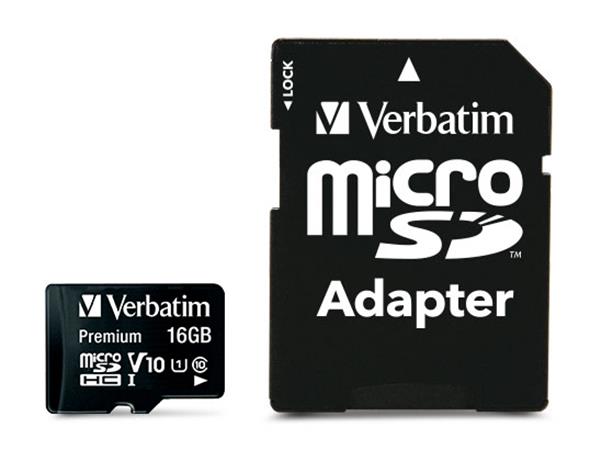 VERBATIM Premium microSDHC 16 GB, Class 10/U1 + adaptér